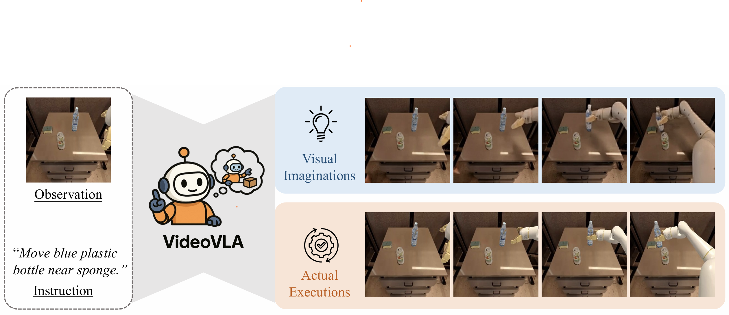 On in-domain tasks, VideoVLA demonstrates strong performance, and further exhibits robust generalization capabilities, including the ability to emulate the new skills transferred from other embodiments and to manipulate previously unseen novel objects.